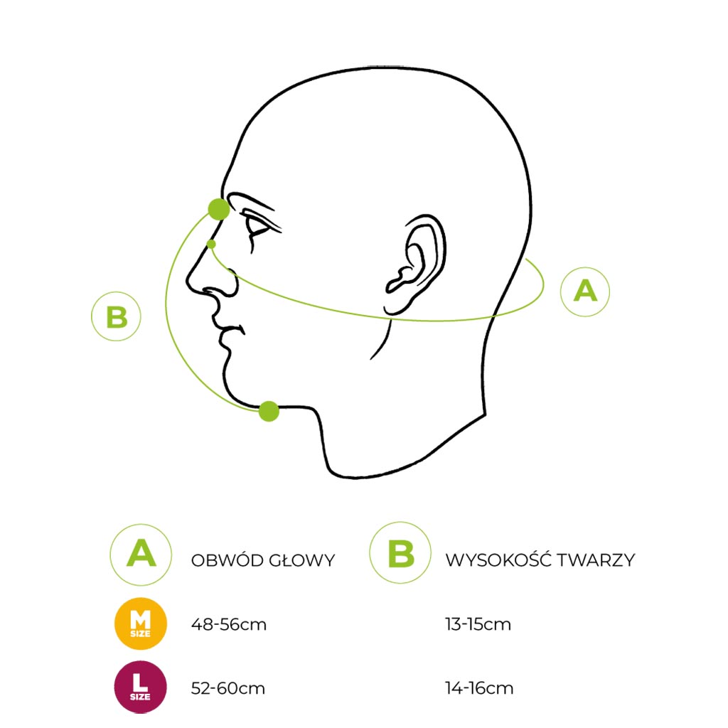 Nie da się stworzyć masek antysmogowych w uniwersalnym rozmiarze, to tak jakby produkować buty tylko w jednym numerze. Dlatego też, aby maska była dla użytkownika wygodna oraz skuteczna, konieczne jest dobranie jak najlepszego rozmiaru maski, tak aby maksymalnie przylegała do twarzy. Tylko maska, która zapewnia prawidłowe uszczelnienie pozwala na wdychanie powietrza przez zawory maski i odpowiednie filtrowanie wdychanego powietrza.